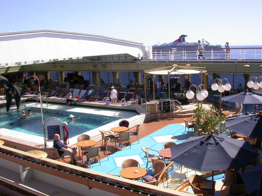 看累了,就睡個短覺;醒來後,又捧回原書繼續著。甲板泳池旁的樂隊,歌手慵懶的聲音,偶爾海鳥幾聲對空長鳴,海角天涯,人在中間。人生難得幾回閒,閒時霎那神仙人。