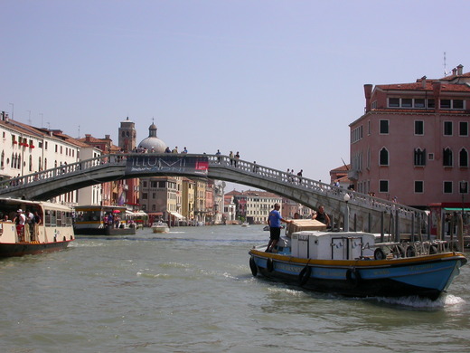 因為單趟乘坐水上公車就需歐元 6.50元,所以買日票划算。依時間長短,有12/24/36/48/72 小時或長達 7 天的選擇,票價分別為歐元16/18/23/28/33 及 7天的 50歐元。對於不想走路的觀光客,有個便捷方法:搭船至該觀光點,然後下船走進去逛,逛畢,再回原搭船點,再上船。the Grand Canal 是環繞威尼斯最主要的運河,除離島 (Lido, Murano, Burano, Torcello) 外,幾乎任何觀光點都可以運用此模氏迅速抵達。譬如說想逛精品店,就由公車站附近的船站上船,至 Rialto Bridge 下船。當然,旅行事前的做功課是絕對需要的。橫跨威尼斯大運河有 3 座橋,Rialto Bridge 是最古老的,橋上人行如織;威尼斯最大的傳統(早)市場,就在附近。這市場也頗值一來,可以看到台灣/北美所沒有的魚種、蔬果及香料。想看典型威尼斯人穿著、儀態,這是好去處;在威尼斯,入眼所見約莫都是觀光客。