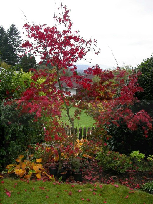 幾日前走在院子裡 訝然發現幾片楓葉 孤零零的