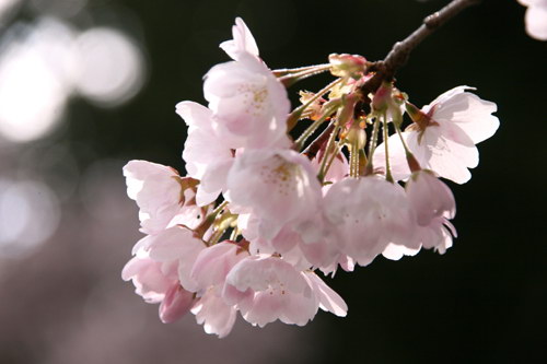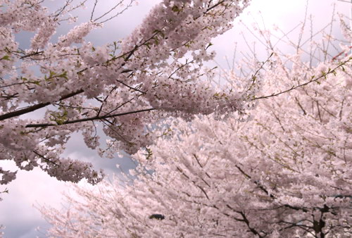 【後記】此時節溫市的櫻花幾乎處處可見,住宅區裡不時可見兩邊皆櫻花的夾道。多年前曾漫步在史丹利公園櫻花區裡,微風過處,就真真有千萬片櫻花凌空而下,迎面飄來,整個臉龐、身子滿沾櫻花,直應了李煜在清平樂裡說:"樹"下落"櫻"如雪亂,拂了一身還滿;錯愕間彷彿走入了電影裡方有的情景,說有多美就有多美。踏在櫻花步道上,直如是櫻花地毯,一步一伐花瓣就被踏碎了;想那櫻花整整等待了12 個月之久,方修成正果,迎風招展。如今風過花落,殊讓自己覺得罪過,好像不如黛玉,只知觀花、嘆花,卻不懂惜花,不知憐香惜玉,真是粗人一個。只是,也惟有那剎時,方懂得詩中所稱,只是稍有三字之別而已:「忽如一陣春風來,千樹萬樹櫻花落。」。