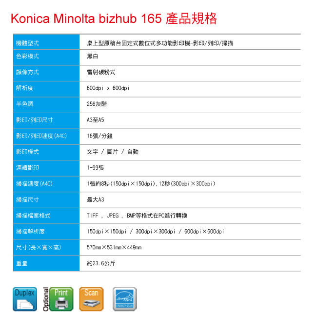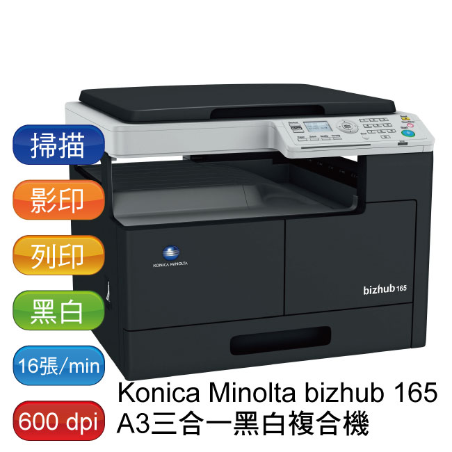推薦便宜【免運】Konica Minolta bizhub 165 三合一黑白雷射複合機 - 原廠公司貨 (含桌)ptt心得記錄