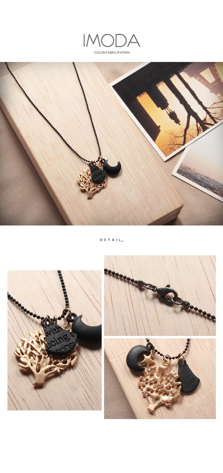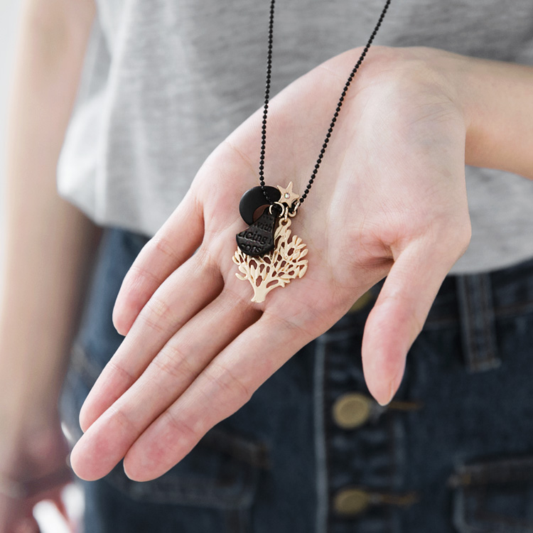 低調的黑色珠鍊獨特且顯白,童趣造型使穿搭更減齡!