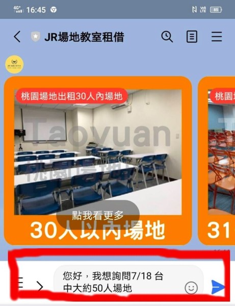 ◆第二步 告知小編您要租借的場地地點、名稱及使用的時段,全台灣的場地太多啦!不知道詳細教室的也可以直接問小編地區、人數以及日期時間