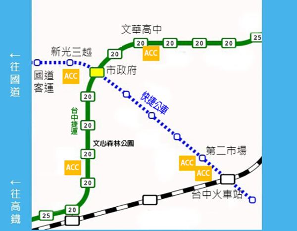台中現在也有捷運了,捷運+台中快捷巴士,讓交通方式不再只有自行開車一個選擇,如果您是外地來台中開會或上課的朋友,也很推薦體驗大眾運輸的便利性喔!