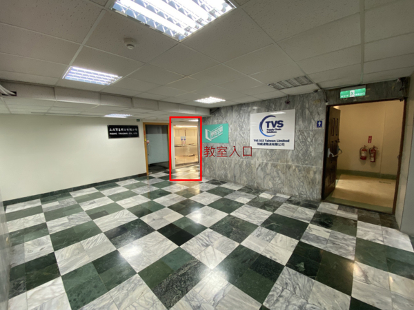 STEP.3出電梯後可以看到牆上淺綠色"學客空間"的標示,稍微往右邊看一點
