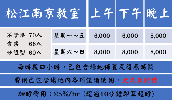 台北松江南京教室出租(66-70人)教室及交通介紹