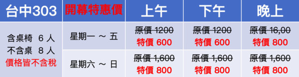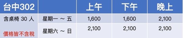 以上時段皆可以依照需求彈性調整 會再額外免費給使用者半小時場佈與場復,前後共可使用4小時