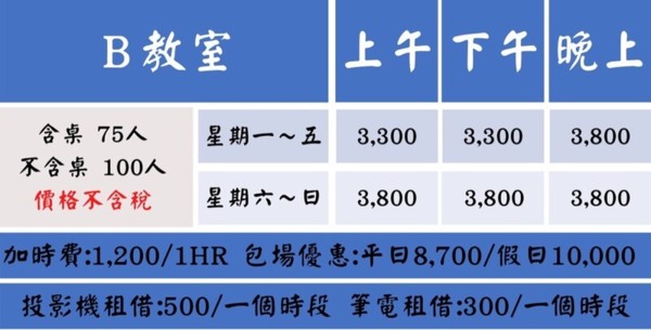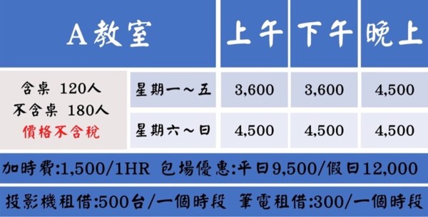 台中民族教室出租(15-180人)教室介紹