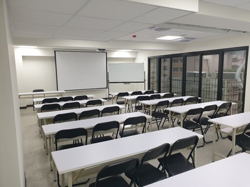 這邊就是JR場地租借在火車站附近最大的場地啦!有40坪寬敞空間,含桌椅120人,純椅子的講座型可以容納高達180人!有三台投影機,橫式的教室排列讓講師可以掌握與學員的互動唷~