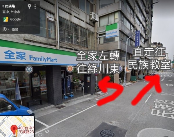 STEP.5 直走經過全家就是民族教室~(左轉往綠川東,下方有篇章介紹怎麼走)