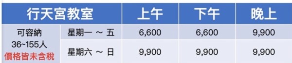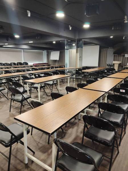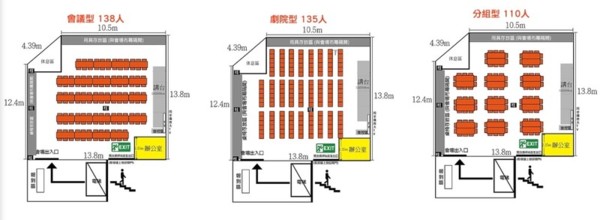 內建提供教室型擺放桌椅,若需其他類型排桌服務$2000