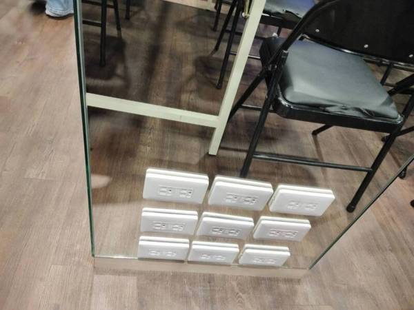 連插頭都接了這樣的兩面牆,筆電或是設備不必擔心找出到充電孔,若您的活動需要高用電,需事先申請請教室方估價唷~