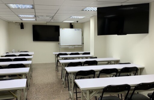 教室二 (11坪) 可容納28-33人-雖然沒有投影機,但教室前後附雙電視螢幕,哪一個角度學員都看得很清楚唷~