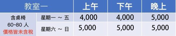 以上時段可額外免費給使用者前後各半小時做為場佈與場復,但需提前申請