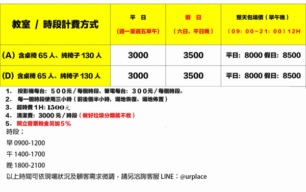 D教室~桌椅65人、純椅130人