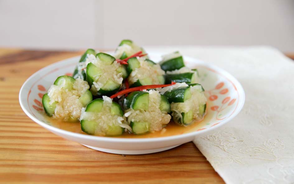 小黃瓜中間填入切絲的蘿蔔,更是多汁爽脆