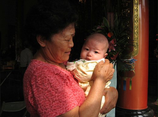 今年十二月廟會時再次巧遇阿嬤,問起小孫子阿嬤滿臉笑容,小孫子搖搖晃晃走過來,雙手合十虔誠祝禱的模樣,可讓身旁的大人們笑彎了腰!