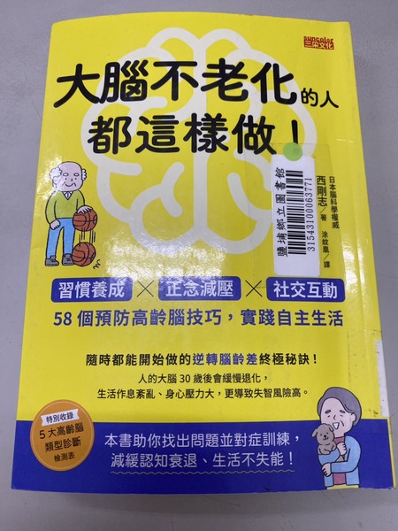 最近拜讀「大腦不老化的人都這樣做!」一書,驚覺要健康到老,不只要體魄強健,也需頭腦清晰。持之以恆透過改變「思考方式」、「行為」及「日常習慣」,就可以鍛鍊大腦。例如:運球、跳雙人舞都是能讓大腦更年輕的「協調運動」;學習新事物,則可提升大腦靈活度、增強記憶;維持好聽力、增加咀嚼次數、攝取動物性蛋白質等健康習慣,可使大腦更年輕。