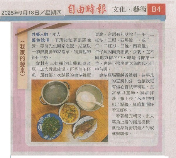 114年9月18日自由時報文化.藝術版【家庭plus】我家的餐桌https://art.ltn.com.tw/article/paper/1724594