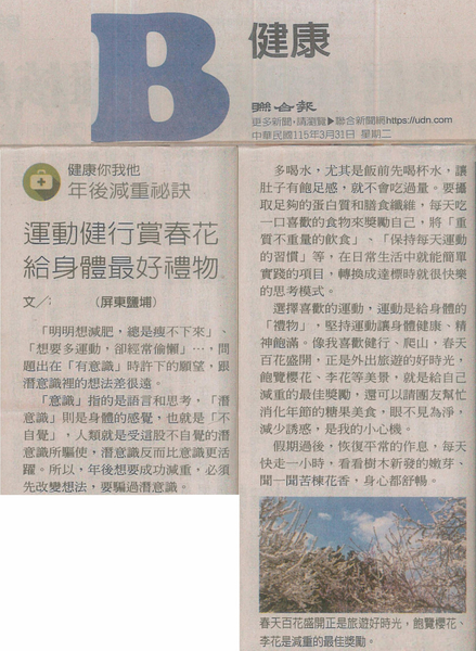 上報文章---健康你我他/運動健行賞春花 給身體最好禮物