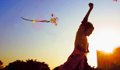 沒幾天,哥哥他們迷上了做風箏、放風箏。而我不會,他們又不願給我做,也不肯借我放。好幾次,我都是被他們甩掉後哭著回家的。一次被林爺爺看見了我在哭泣,在問明原委後,他摸摸我的頭說:「小丫頭,不要哭嘛!林爺爺給你做一個比他們好看很多、大很多的風箏。」