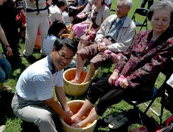 母親回來後,見兒子準備好了一盆水要為她洗腳,覺得很奇怪,便說:「腳,我還洗得動,我自己來吧!」