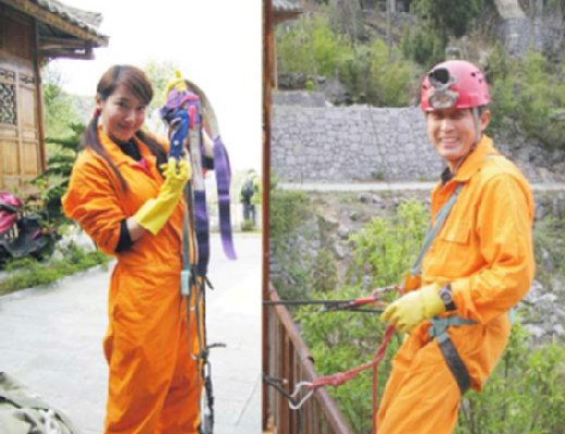 面對垂直的牆壁,我必須要很信任綁在我身上的繩帶,還要將繩子不斷往上放,加上害怕,我的手臂還真不是普通的酸啊!成功下降後,我以為結束了,還很開心呢!但老大又教我如果使用上升器上去,我也只好照做了;但是升到一半時,老大又教我如何從上升的狀況變至下降;在反複練習的學習過程中,我已經覺得手非常非常無力了!可是老大說,還要再教我如何去變換身上的繩子(是因為如果繩子的長度不夠於要下降的高度時,就必須在中途更換主繩),以備意外狀況之不時之需。