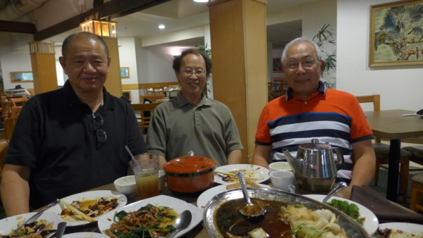 王步天,王曉天,我認為,在台灣有權有勢子弟中,還算是不錯的.他們雖然書唸的非一流,步天唸中原,曉天唸輔仁,但也算是不錯的.他們為人謙和,對朋友也很好.我與步天同學三年而已,但我與曉天(毛哥)從初三同班,高中也算同學三年,後來他唸輔仁,我唸中原,每天通勤走讀,在行政院門前,乘由中崙站出發,開往中壢的公路班車.所以也常相遇.說到這兒,要提提毛哥至今還欠我NT$10.00.有天早晨我倆在行政院站等公路局班車,聊天時突然問我,可否借十塊錢給他.以當年的交情,一句話沒問,就借了.我心想八成是忘了帶中飯錢.後來再見面,肯定是忘了,所以沒還這十塊錢.後來我們當兵時,我在陸總部化學兵處,協助參謀辦理國外採購業務,毛哥在台北汽基處服役.有次在快退役前路過汽基處附近,還就近拜訪了毛哥.當然他也在那大熱天,花了點銀子,打了一罐Coke 請我喝(vending machine),對我也算是很禮遇了.那次相見,好像是我們最後一次見面吧.往後,大家來美國,各奔前程,也就失去了聯絡. 上面的餐敘,邊吃邊聊,一晃快到下午四點才散會.下次再聚畢竟不難,因為都住休士頓.話題中所提及三十多年不見的老同學,在我們成senior citizen時,提到他們名字,也帶了幾分懷念.