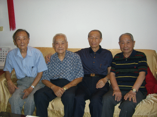 左:汪夢泉(十二期第二批留美人員,中美聯隊七中隊,中將退役。)、董汝泉(十二期第二批留美人員,中美聯隊三十二中隊。)、陳炳靖(十二期第一批留美人員,美國十四航空隊七十五中隊。)、唐崇傑(十二期第一批留美人員,中美聯隊七中隊,中將退役。)