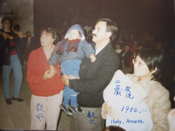 1985年9月在羅馬的華人神父和修女規劃「紀念利馬竇來華宣教四百年」活動。紀念的活動有很多,除了紀念彌撒,利馬竇來華四百年文物展,還規劃了一個在利馬竇家鄉馬切省(Marche),為中國嬰孩受洗的活動。在羅馬的神職人員找好了教堂,找好了為孩子受洗的主教,但是一直找不到合適的孩子。最後聽説我們家有個剛剛滿兩歲的老大,和剛出生滿月的老二,在羅馬的華人天主教團體就希望這兩位孩子能成為紀念利馬竇來華四百年受洗活動的受洗者。在羅馬進修的方修女向我太太談及此事,希望我們務必答應,因為一時間找不到適齡的華人孩子。萬太太有點猶豫,我一口答應,因為我從小就是天主教徒,我認為這樣的機會是上天的安排。