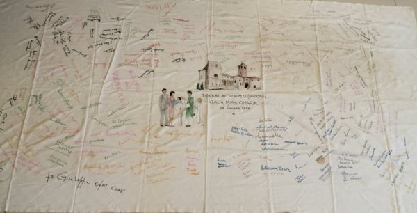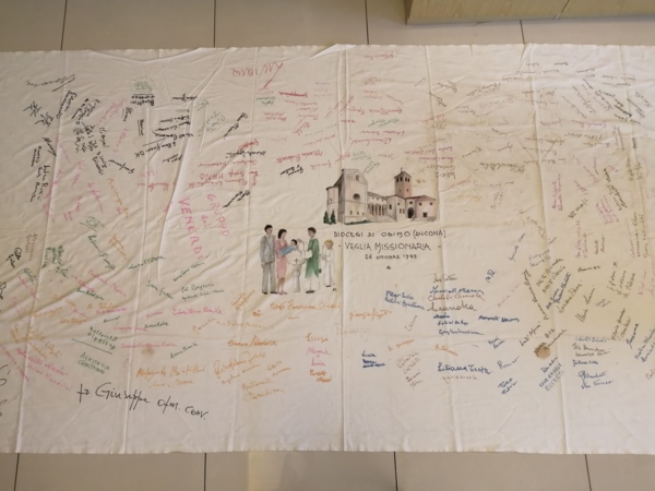 在1985年10月26日傍晚我們一家四人,我和太太,兩歲的老大和剛剛滿月抱在懷中的老二,抵達受洗的教堂。在利馬竇家鄉的 Diocesi di Osimo (Ancona) 教堂,由當地教區的主教為兩孩子受洗。同時還有一對夫婦擔任我們孩子的教父和教母。那是個很難忘的夜晚,小鎮來了很多教友。義大利是天主教國家,基本上人人都是天主教徒。他們為我們祝福,唱聖歌。教堂還準備了一塊很大的禮布,150公分X280公分,上面畫了教堂和受洗嬰孩,寫上日期。這是個非常鄭重的儀式。我在羅馬服務期間遇到這樣的機遇,是世上蒼的安排,也算是「四百年一次」吧?