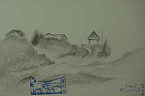 有次也在陽明山隨手畫畫,偏偏蚊子一堆,實在擾人。以前看過有人在幽暗的翠湖畔寫生,全身穿得像採茶姑娘,只露出眼睛,大概也是為防蚊子吧。