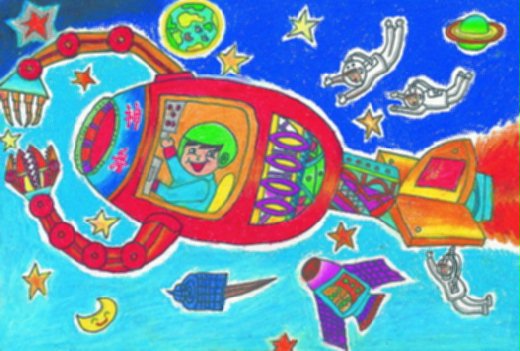 站在自家的陽台,抬頭仰望繁星密佈的天空,心裡就會湧起許多美麗動人的遐想。昨晚,我夢見自己像楊利傳叔叔一樣,被送上太空,自由的太空中飛翔,心裡發出舒心的微笑。今天我畫出的神秘的太空飛船,明天也許就會成為現實。