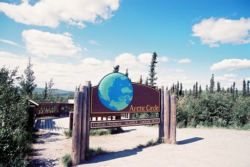 Dalton Highway在Fairbanks北方, 是Alaska進入北極圈唯一的路. 此路全長416英哩, 在115哩處進入北極圈, 其間並經過育空河,終點是北極海的Prudle Bay.這條路雖名為Highway, 但是完全沒有鋪柏油,且沿路有許多往返至Prudhoe Bay油田的18輪大貨車,故沒有萬全準備勿輕易嘗試.Fairbanks當地有幾家旅遊公司提供跨越北極圈的一日遊,行程由Fairbanks出發到達北極圈再折返,全程約十小時,也有二日或三日遊,一直開到北極海岸的Prudhoe Bay,再搭飛機回來.不過我們既然開了4WD的車, 當然是要親自開過去,著名的阿拉斯加油管在這裡是沿著Dalton Highway 修築的,故油管不時的出現在我們的右側.雖說是接近北極圈了,但沿途豔陽高照,溫度都在20度左右,在育空河邊有一間Visitor Center, 是由聯邦土地管理局(BML)負責的, 裡面一對老先生和老太太擔任義務解說員,他們看到我們小孩就各給了一個Junior Ranger的胸章,兩個小鬼雖不知此為何物但也頗為高興,不過這整條路上我還沒有看到其他帶小孩同遊的家庭,我的小女兒再一個月才滿四歲,不知可不可以名列國內經由陸路進入北極圈中最年輕者.如果你們知道還有年齡更小的,來信告訴我吧。