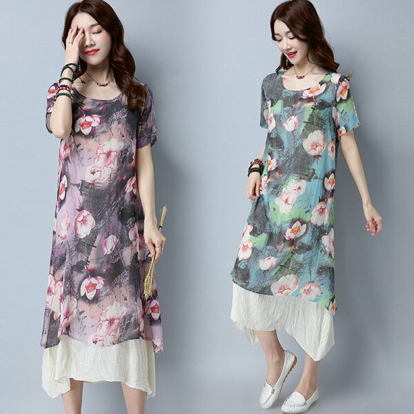 出自:線上購物分享 - FINDSENSE G5 韓國時尚 夏季 新款 女裝 復古 棉麻 短袖 中長款 連身裙 女裙