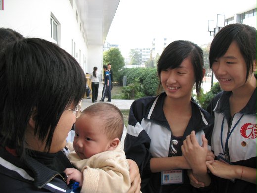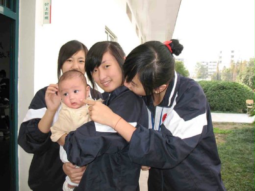 果不其然安安在校園受到了姐姐同學的熱烈歡迎!哈哈哈,小安安一下子就被十多位美女帥哥團團包圍,大家都說他:好可愛哦!好可愛哦!