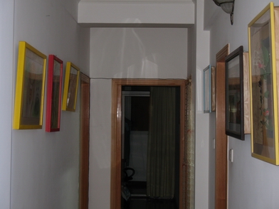 我現在租住的地方剛好有一道走廊,經過房東的同意之後,我把廊上掛上了我毌親跟我跟我女兒的作品.