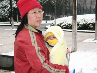 這二張照片是我大兒子剛從醫院回家,而我跟安安正要去醫院,在家前的公園前照的,因為這是安安第一次碰到下雪呢,給他留個紀念.
