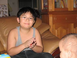 弟弟則是老爸的COPY版,小一時帥到被班上女生偷親吔~~現在小三了,