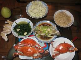 螃蟹及鮮魚,用他拿手的火烤螃蟹及清蒸鮮魚讓兒子大飽口福~~