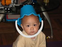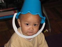 自己拿小水桶去當帽子戴~~~我就不知道是不是大家都會啦~~~