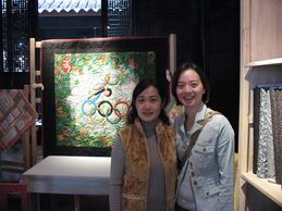 照片一:專程來上拼布課的德華與欣儀在敎室前合影