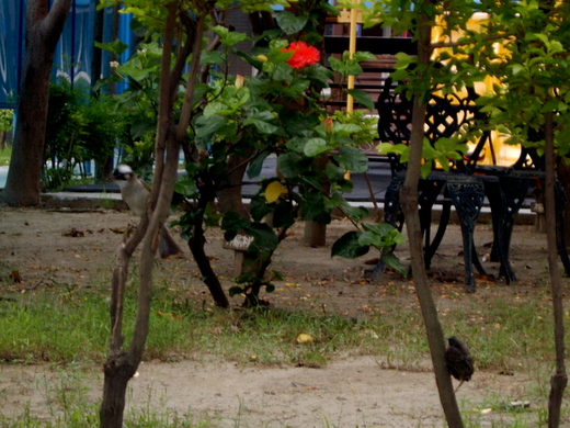 美麗的校園裡,土地面積一千兩百多坪,有綠地花香和水果樹〈檸檬/楊桃/芒果/和西洋印度櫻桃樹〉,吸引了許多昆蟲聚集的地方,最近,出現一對白頭翁,每天忙碌的覓食食物餵樹上鳥巢的小小鳥。