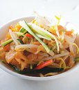 1.小黃瓜洗淨切絲,蒜頭洗淨切片狀;香菜洗淨切碎;豆芽菜洗淨