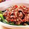3.另熱一鍋,放入油1大匙,蒜末、薑末、辣椒末爆香,放入作法1的羊肉片,快炒數下,放入調味料B拌炒均勻至熟,淋在作法2的油菜上即可。