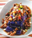 2.茄子洗淨,切段後泡入鹽水中備用。