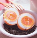 2.作法1的雞蛋輕輕放入鋼鍋,加水至蓋過雞蛋為準,再加入鹽,以大火煮沸騰後,轉為中火煮3~5分鐘撈起,馬上浸泡作法1的冷水加入冰塊浸泡涼透後剝去外殼。