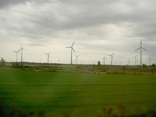 清晨六點從維也納(Vienna)搭上往匈牙利布達佩斯(Budapest)的火車, 途中經過一處平原,平原上佇立了許多大型風車轉動著,十分的壯觀.