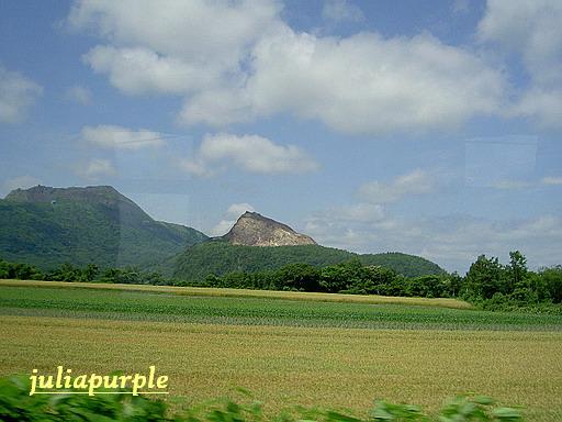告別登別後,接著的目的地是離昭和新山不遠的壯別町的水果摘採, 車行不久果然見到光禿禿的昭和新山不時還吐著一小屢白煙.