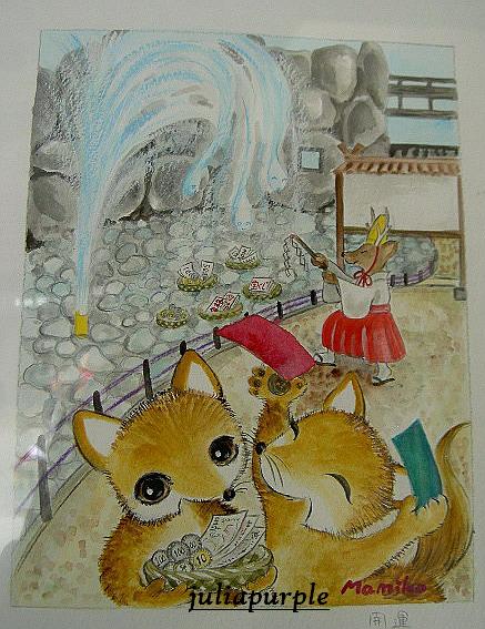 這裡這時剛好也舉辦了一位日本女繪畫家"中西真美子"的作品展覽,多以動物為題材配合當地風光所繪製,十分可愛呢!請大家欣賞嘍!....